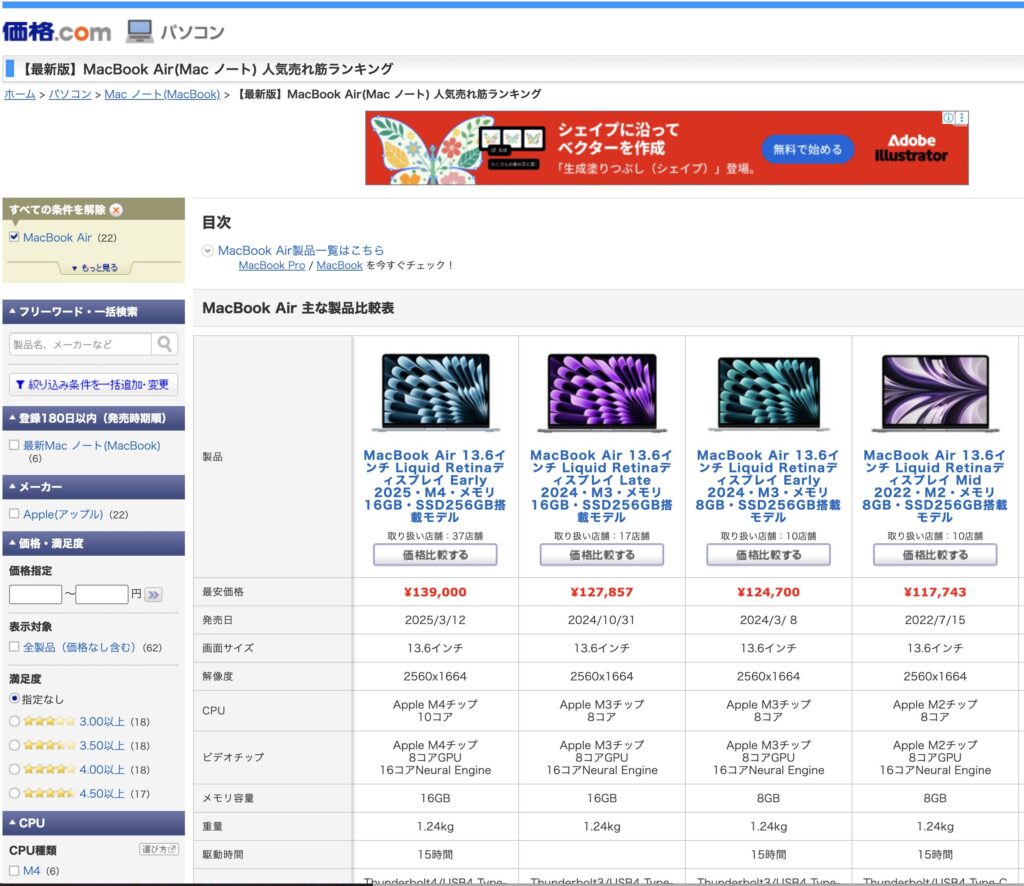 ちなみに、私はAirを選びましたが、ライティング・SNS投稿・簡単な画像編集程度なら何の不便もありません。