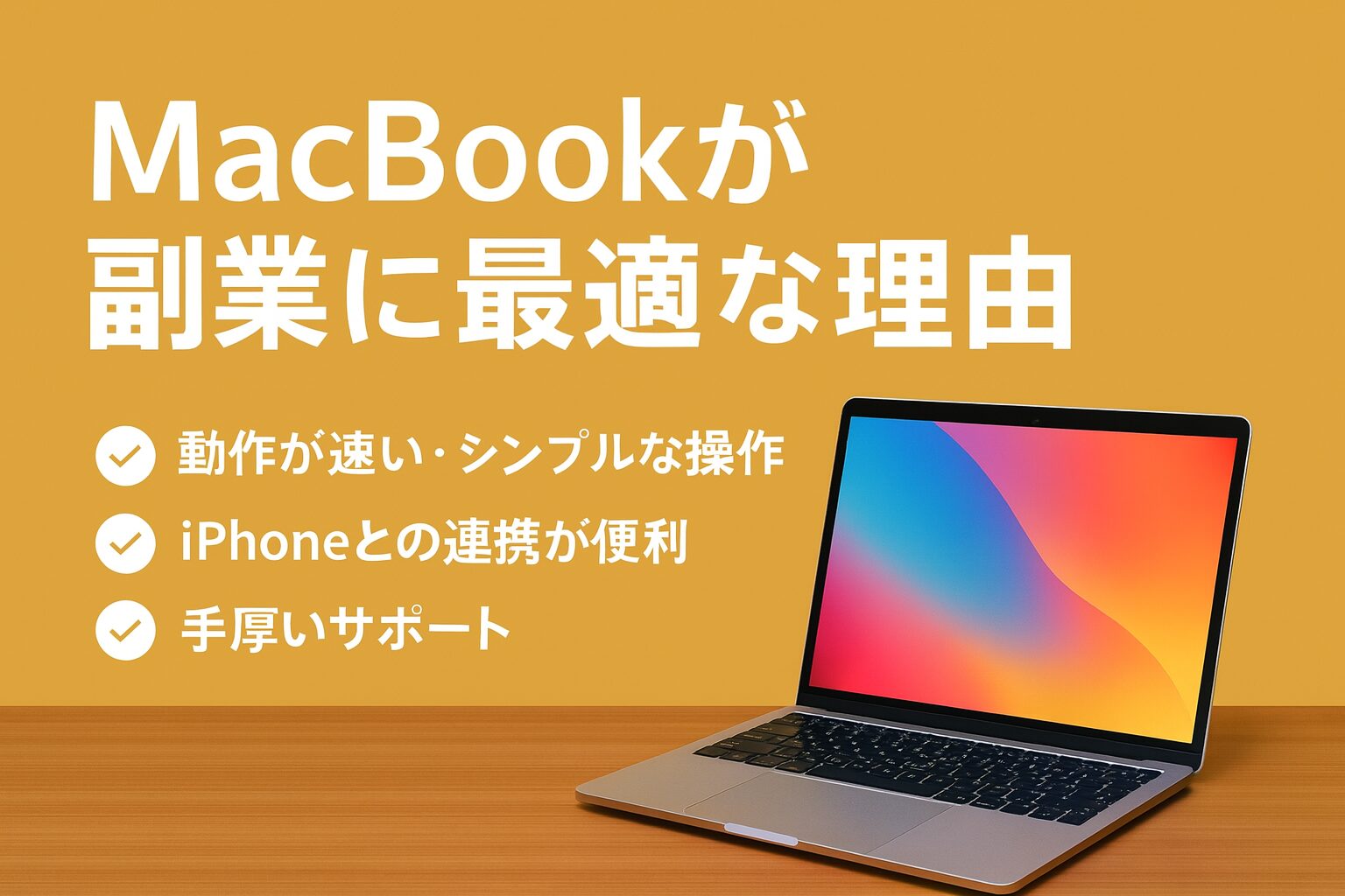 副業を始めたいあなたへ。WindowsからMacBookに乗り換えた私の体験をもとに、MacBookが副業に向いている理由・初心者向け設定・おすすめモデル・お得な購入先まで、やさしく紹介します。