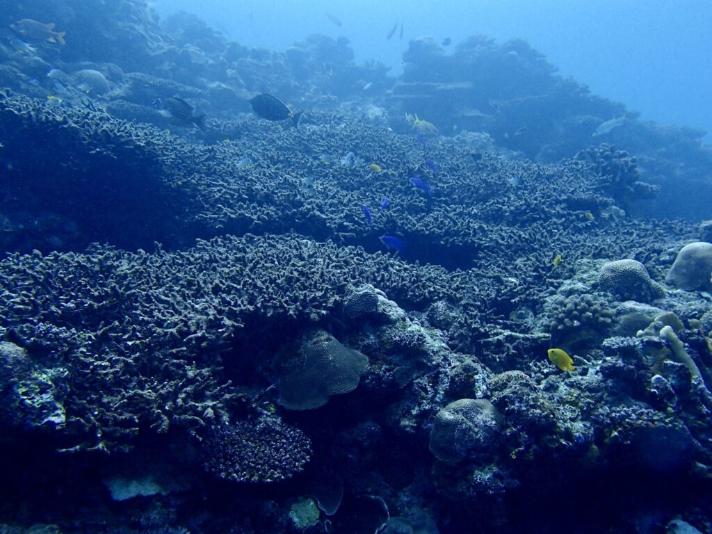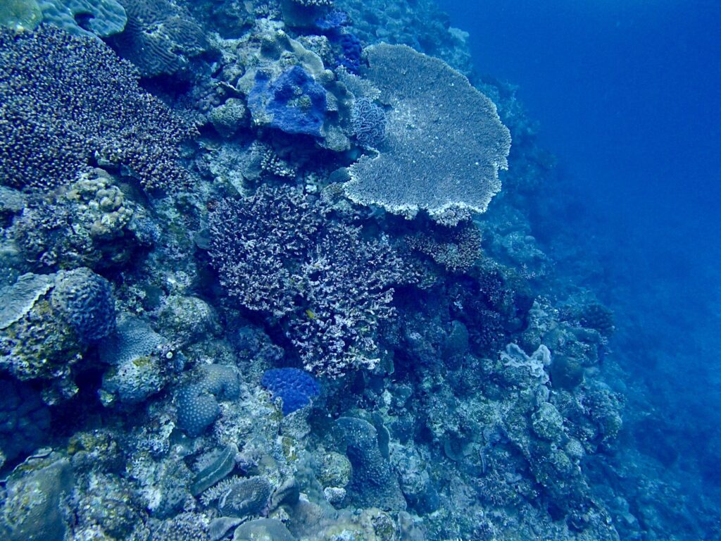 さまざまな形の珊瑚が幾重にも重なり合い、複雑でダイナミックな地形を形成しています。自然が作り出した造形美に感動。